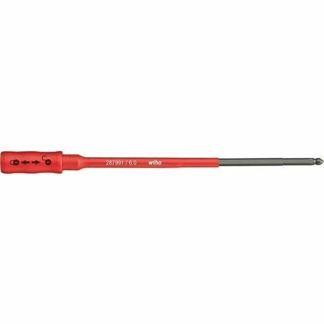 VDE-Wechselklingehalter slimBit Ausführung: Aus Chrom-Vanadium-Molybdän-Stahl, brüniert. Isoliert bis 1000 V nach IEC 60900, DIN EN 60900, VDE 0682/Teil 201, stückgeprüft bei 10000 V. Anwendung: Zur Aufnahme von 6-mm-Wechselklingen slimBit. Nicht für Bits der Formen C 6,3 und E 6,3 zu verwenden. Eigenschaft: Außen-Ø:13 mm|Klingenlänge:170 mm|Marke:Wiha |WGNr.:W530 |