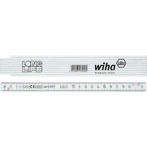Swiss made, weiß mit schwarzer Teilung und roten Dezimalzahlen · Patentiertes Gelenksystem mit 90° Rastung aller Gelenke – dadurch extrem