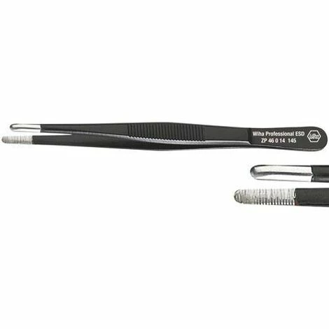 Anwendung: Universalpinzette für alle gängigen Anwendungen in der Elektronik. · Ausführung: Fein gezahnte Greifflächen, geriefelte Griffflächen. Blendfrei schwarz beschichtet, antistatisch. Antimagnetisch und säurebeständig. Oberflächenwiderstand 10^6 – 10^9 Ohm. · Normen: IEC 61340-5-1. · Werkstoff: Speziell legierter, rostfreier