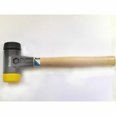 Schlagköpfe: Schwarz: mittelweicher Kautschuk (Gummi), verschleißfest. Gelb: mittelhartes Polyurethan, farbecht und verschleißfest.