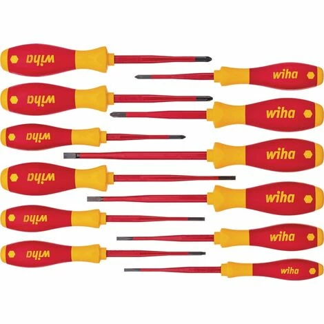 mit SoftFinish® Mehrkomponentengriffen · Klingen isoliert · stückgeprüft gemäß IEC 60900 · Klingen aus Chrom-Vanadium-Molybdän-Stahl · Schneiden und Spitzen brüniert Durch die im vorderen Bereich vollständig in die Klingen integrierte Schutzisolation können auch tiefliegende Schrauben gut erreicht werden. Weitere technische Eigenschaften: · Griff: Mehrkomponentengriff · Ausführung: slim fix · Verpackung: Karton