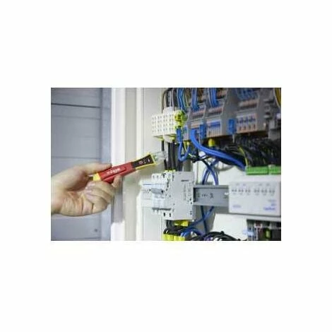 Spart Zeit: Schnelle Spannungsprüfung durch berührungsloses Messen.Steigert Ihre Effizienz: Dank international angepasster Messspitze für alle Steckdosen weltweit einsetzbar.Integrierte, leuchtstarke LED Taschenlampe.Erhöht Ihre Flexibilität : Spannungsprüfer deckt einen großen Spannungsbereich von 12 – 1.000 V AC ab.Vor Beginn einer Elektroinstallation müssen Elektriker gewährleisten, dass das Arbeitsumfeld spannungsfrei ist. Um elektrische Wechselfelder testen oder mutmaßliche Fehlerquellen orten zu können, wird ein Spannungsprüfer benötigt. Eine erste Indikation, ob Spannungsfreiheit vorliegt, ist mit dem berührungslosen Wiha Spannungsprüfer dank optischem und akustischem Signal möglich. Nach dem Einschalten zeigt die permanent grün leuchtende LED die Funktionsbereitschaft an. Bei der Spannungsprüfung leuchten je nach Stärke des elektrischen Wechselfeldes die LEDs von blau (schwach) über orange bis hin zu rot (stark). Für die Benutzung werden zwei AAA Batterien benötigt, welche im Lieferumfang enthalten sind. Wird das Gerät 4 Minuten lang nicht verwendet, schält es sich automatisch aus um Energie zu sparen. Eine integrierte LED Taschenlampe ermöglicht die Messtellenbeleuchtung in dunkler Umgebung und kann durch manuelles Ein- und Ausschalten als Taschenlampe verwendet werden. Der Spannungsprüfer mit Ansteckclip passt dank seiner handlichen Größe bequem in jede Hemd- und Hosentasche. Dank der international angepassten Messspitze ist der Spannungsprüfer für alle Steckdosenvarianten weltweit geeignet. Der einpolige Spannungsprüfer unterliegt der Norm EN 61010-1 / IEC 61326 und ist ausgelegt für CAT IV 1.000 VAC. Weiterhin ist das Werkzeug nach dem ATEX Standard für den Einsatz in explosionsgefährdeten Bereichen zugelassen (Kategorie II).Anwendung: Zum Erkennen und Lokalisieren von spannungsführenden Leitern, Kabelunterbrechungen und -brüchen, durchgebrannten Sicherungen, defekten Lampen an Lichterketten sowie Einzellitzen-Erkennung. | Eigenschaften: Gewicht: 1000, Gesamtlänge: 150, Akkutyp: 2 x AAA, Anzeigeart: optisch, Schutzart IP: IP 67, Gleich-/Wechselspannung: 90-1000