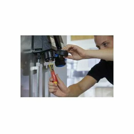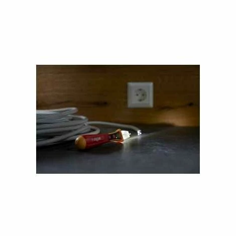 Steigert Ihre Effizienz: Integrierte, leuchtstarke LED Taschenlampe.Spart Zeit: Schnelle Spannungsprüfung durch berührungsloses Messen.Erhöht Ihre Flexibilität: Spannungsprüfer deckt einen großen Spannungsbereich von 12 – 1.000 V AC ab.Steigert Ihre Effizienz: Dank international angepasster Messspitze für alle Steckdosen weltweit einsetzbar.Anwendung: Zum Erkennen und Lokalisieren von spannungsführenden Leitern, Kabelunterbrechungen und -brüchen, durchgebrannten Sicherungen, defekten Lampen an Lichterketten sowie Einzellitzen-Erkennung.Vor Beginn einer Elektroinstallation müssen Elektriker gewährleisten, dass das Arbeitsumfeld spannungsfrei ist. Um elektrische Wechselfelder testen oder mutmaßliche Fehlerquellen orten zu können, wird ein Spannungsprüfer benötigt. Eine erste Indikation, ob Spannungsfreiheit vorliegt, ist mit dem berührungslosen Wiha Spannungsprüfer dank optischem und akustischem Signal möglich. Nach dem Einschalten zeigt die permanent grün leuchtende LED die Funktionsbereitschaft an. Bei der Spannungsprüfung leuchten je nach Stärke des elektrischen Wechselfeldes die LEDs von blau (schwach) über orange bis hin zu rot (stark). Für die Benutzung werden zwei AAA Batterien benötigt, welche im Lieferumfang enthalten sind. Wird das Gerät 4 Minuten lang nicht verwendet, schält es sich automatisch aus um Energie zu sparen. Eine integrierte LED Taschenlampe ermöglicht die Messtellenbeleuchtung in dunkler Umgebung und kann durch manuelles Ein- und Ausschalten als Taschenlampe verwendet werden. Der Spannungsprüfer mit Ansteckclip passt dank seiner handlichen Größe bequem in jede Hemd- und Hosentasche. Dank der international angepassten Messspitze ist der Spannungsprüfer für alle Steckdosenvarianten weltweit geeignet. Der einpolige Spannungsprüfer unterliegt der Norm EN 61010-1 / IEC 61326 und ist ausgelegt für CAT IV 1.000 VAC. Weiterhin ist das Werkzeug nach dem ATEX Standard für den Einsatz in explosionsgefährdeten Bereichen zugelassen (Kategorie II).Für Anwendungen in der ElektrikVor und nach jedem Einsatz ist der Spannungsprüfer an einer bekannten Spannungsquelle zu testen, um die Funktionsfähigkeit sicherzustellen. | Eigenschaften: Gesamtlänge: 150, Schutzart IP: IP 67