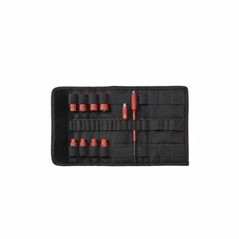 Vereinfacht Ihre Arbeit: Alle Werkzeuge sicher und geordnet in einer robusten und übersichtlichen Tasche untergebracht.Erhöht Ihre Flexibilität: Steckschlüsseleinsätze dank der beiliegenden Adapter mit speedE, slimVario und TorqueVario-S Werkzeugen nutzbar.Schützt Ihr Material: Vollisolierte Steckschlüssel reduzieren die Gefahr von Kurzschlüssen.Bietet Ihnen vollen Schutz: Jedes Werkzeug einzeln bei 10.000 V AC getestet und zugelassen für 1.000 V AC.Anwendung: Für Arbeiten im Bereich von spannungsführenden Teilen bis 1.000 V AC. Ideal für den mobilen Einsatz und im beengten Arbeitsumfeld.Bei Arbeiten an unterschiedlichen Einsatzorten wie z.B. an Schaltschränken und elektrischen Anlagen werden viele verschiedene Schraubprofile benötigt. Das 10-tlg. Set deckt mit seiner Auswahl an Steckschlüsseleinsätzen die gängigsten Verschraubungen ab und ist somit flexibel einsetzbar. In Kombination mit speedE, slimVario und TorqueVario Werkzeugen können die Steckschlüsseleinsätze für das Anziehen und Lösen von Sechskant-Schrauben verwendet werden. Sicher verstaut und geordnet in einer robusten Falttasche sind die Elektriker-Werkzeuge perfekt für den mobilen Einsatz geeignet. Zudem bietet die Tasche ausreichend Platz für weitere slimVario und TorqueVario-S Produkte. Gerade im beengten Arbeitsumfeld verhindern die vollisolierten Werkzeuge bei unabsichtlichem Kontaktieren zweier Leiter einen Kurzschluss. Jedes Werkzeug im Set wurde gemäß der internationalen Norm IEC 60900 einer Stückprüfung unterzogen und ermöglicht ein sicheres Arbeiten im Bereich von spannungsführenden Teilen bis 1.000 V AC.Inhalt:1x Adapter slimVario electric für 1/4 Steckschlüssel 6,0 mm (43139)1x Adapter TorqueVario-S electric für 1/4 Steckschlüssel (43128)1x Steckschlüsseleinsatz isoliert 1/4 Außensechskant 5,0 mm (43089)1x Steckschlüsseleinsatz isoliert 1/4 Außensechskant 5,5 mm (43090)1x Steckschlüsseleinsatz isoliert 1/4 Außensechskant 6,0 mm (43091)1x Steckschlüsseleinsatz isoliert 1/4 Außensechskant 7,0 mm (43092)1x Steckschlüsseleinsatz isoliert 1/4 Außensechskant 8,0 mm (43093)1x Steckschlüsseleinsatz isoliert 1/4 Außensechskant 10,0 mm (43095)1x Steckschlüsseleinsatz isoliert 1/4 Außensechskant 11,0 mm (43096)1x Steckschlüsseleinsatz isoliert 1/4 Außensechskant 13,0 mm (43098)1x Falttasche | Eigenschaften: Ausführung: Stecknuss, Gewicht: 419 g, Antriebsvierkant: 1/4, Anzahl der Teile: 10, Antriebsform: Vierkant, Serie: 7209N, VDE-geprüft: Ja, VDE geprüft: Ja, Abtriebsform: Außensechskant