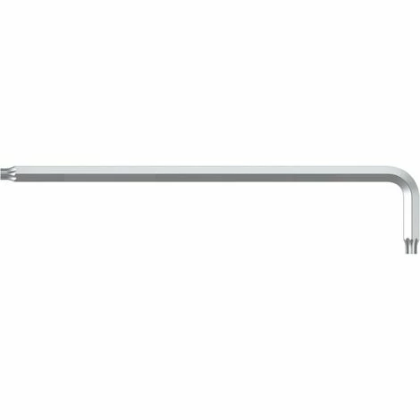 Winkelschraubendreher für TORX®, lang Ausführung: Aus Chrom-Vanadium-Stahl, durchgehend gehärtet, titansilber, matt. Oberflächenveredelung sorgt für idealen Korrisionsschutz am ganzen Schlüssel, kein Ölen oder Wachsen notwendig. Lange Ausführung. Eigenschaft: Größe:T 27 |Schenkellänge:176 x 36 mm|Marke:Wiha |WGNr.:W530 |